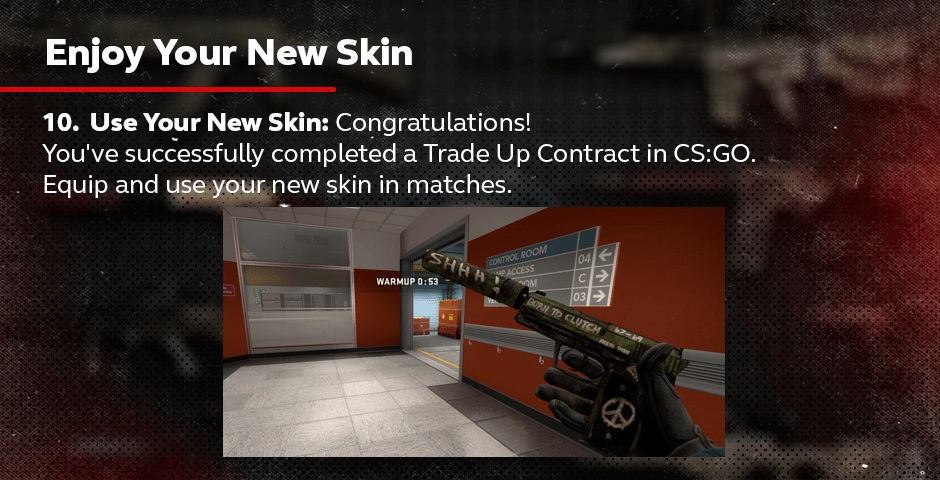 使用你的新皮肤:恭喜!你已成功完成CS2中的汰换合同。在比赛中装备并使用你的新皮肤。